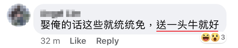 ▼ 有网友则留言:娶我不难!一头牛就好!