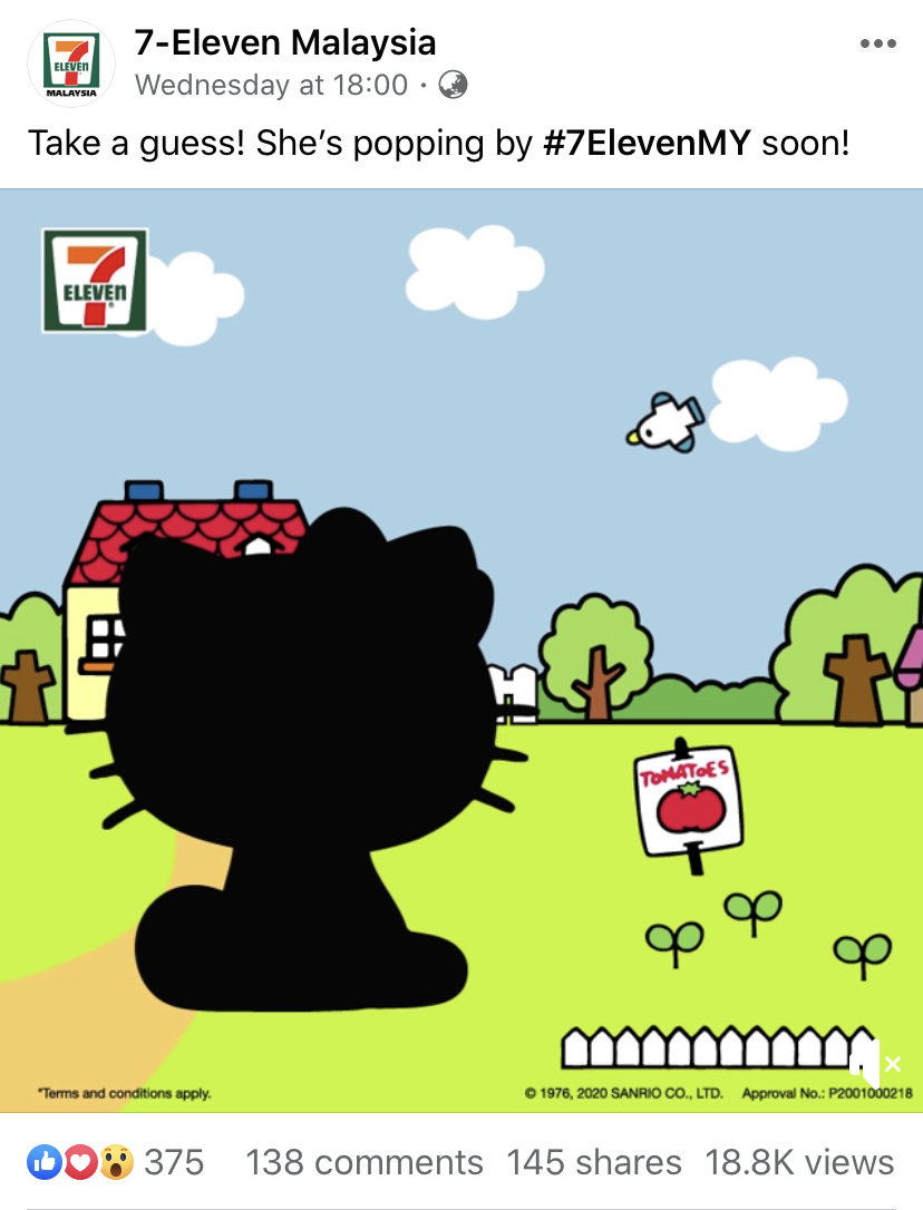 喜爱 Hello Kitty 的朋友们,注意注意!大马 7-Eleven 近日在官方面子书发文预告,即将推出全新系列的赠品,但预告片里只有影子。这影子还看不出来吗?!就是 Hello Kitty啦~