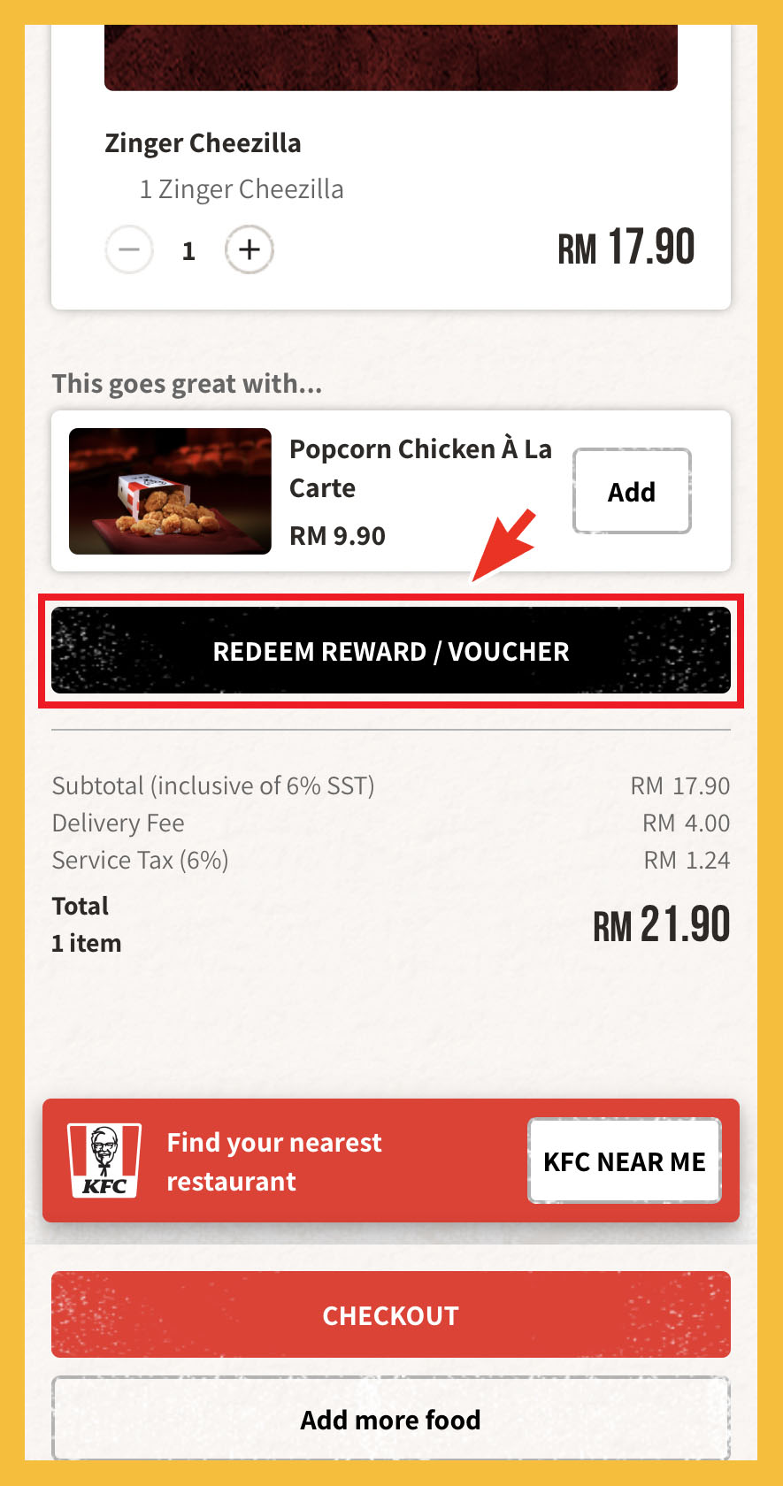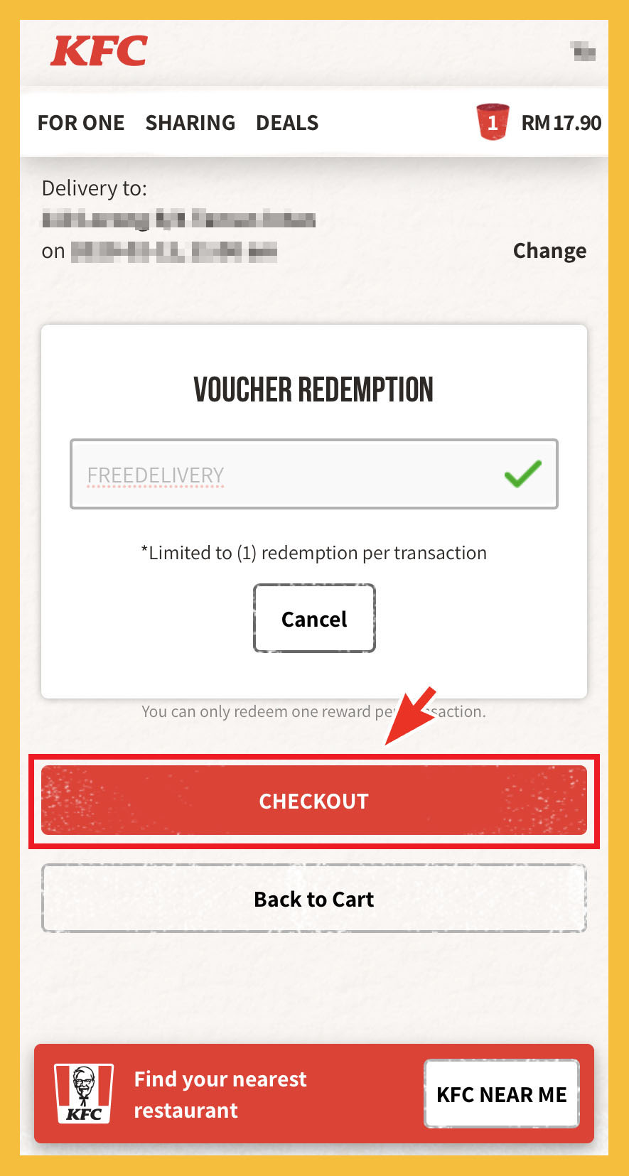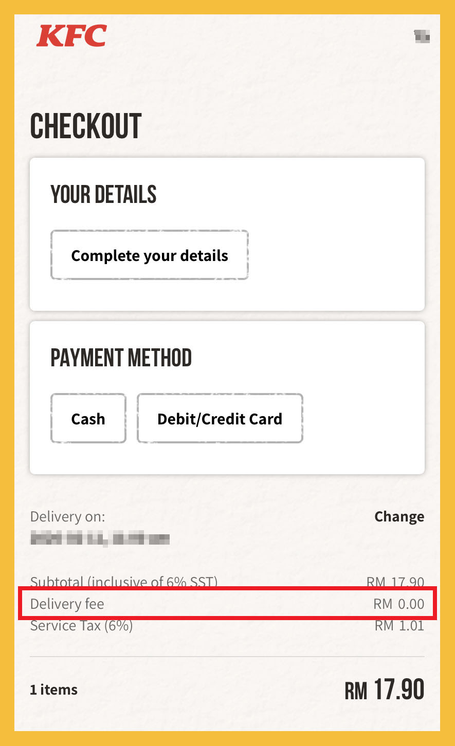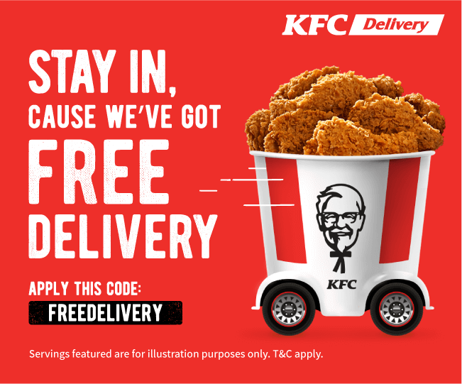 只要通过 KFC App 或 KFC 官网订购任何 KFC 餐点满 RM15 或以上,就可享有免费的 KFC Delivery!无需付外送费用!