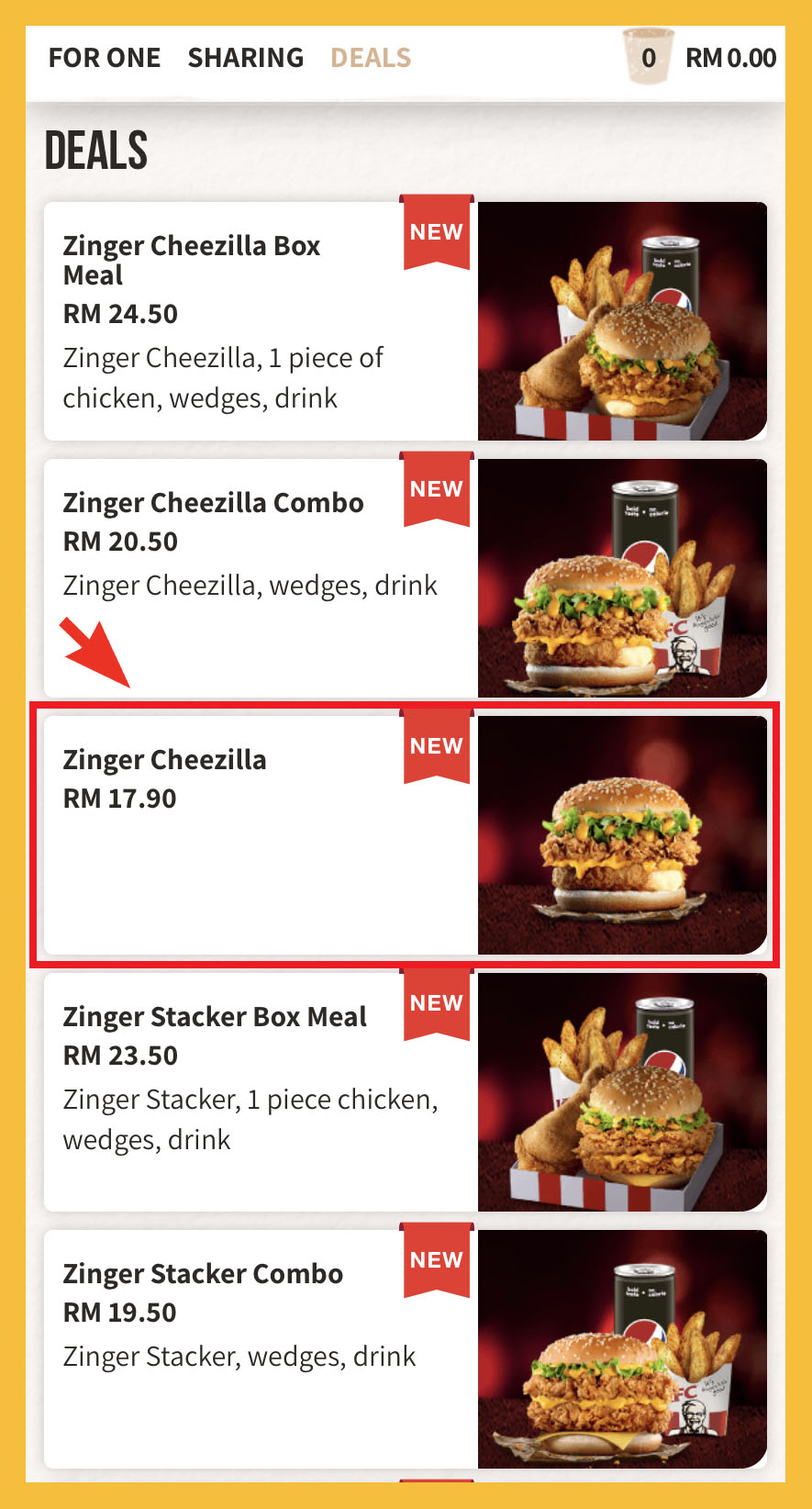 ▼ Step 3:选择餐点(需满 RM15 或以上)并点击。