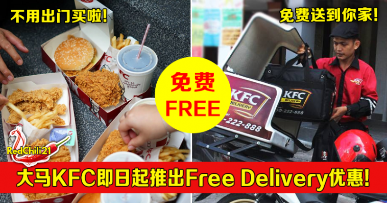 想在家里舒舒服服地享受KFC大餐,但又不愿意出门?没问题!大马即日起推出免费外送服务!也就是 Free Delivery!
