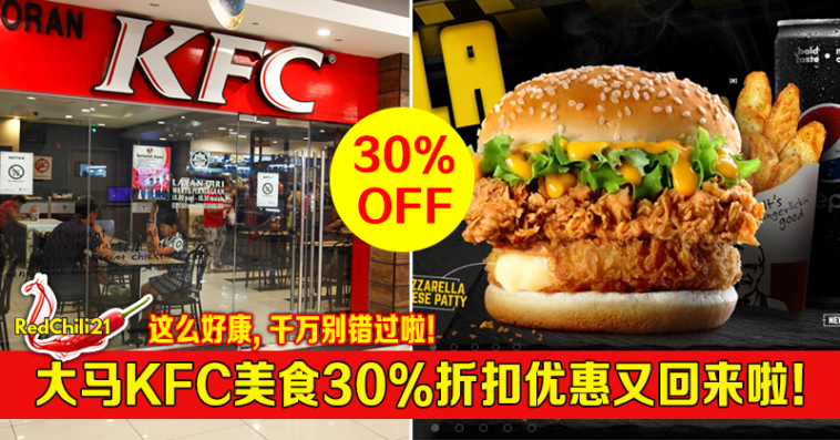 如果还没品尝到这2种Zinger Burger的话,也别伤心!小编正要告诉你就是大马KFC美食30%折扣优惠又回来啦!