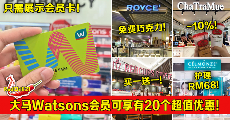 只要出示 Watsons 会员卡就可享有 Watsons 推出的20个「Member Reward」超值优惠啦!