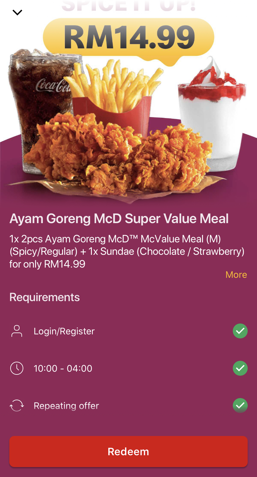 ▼ Ayam Goreng McD Super Value Meal 只需RM14.99