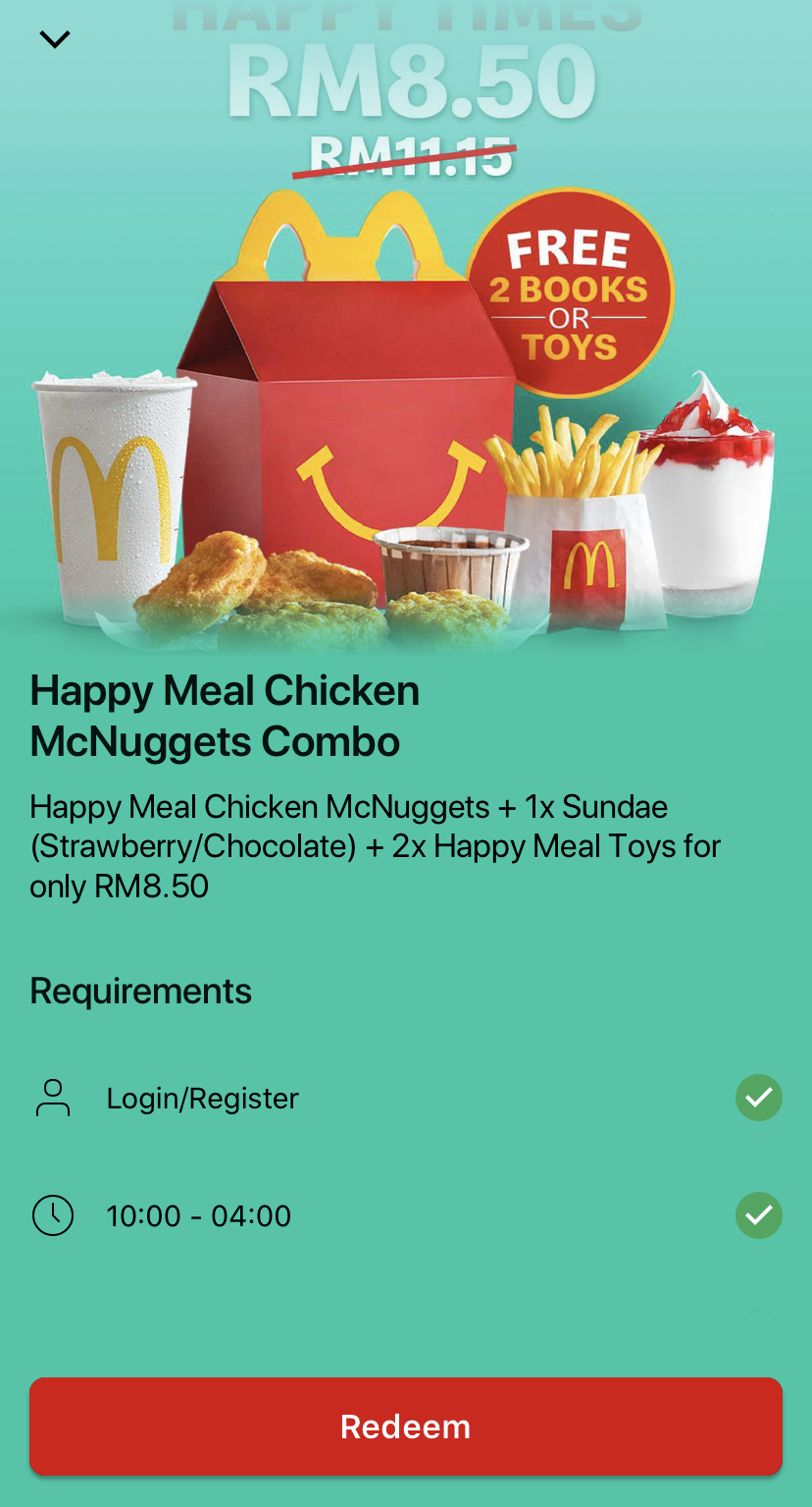 ▼ Happy Meal Chicken McNuggets Combo 只需RM8.50(原价RM11.15)