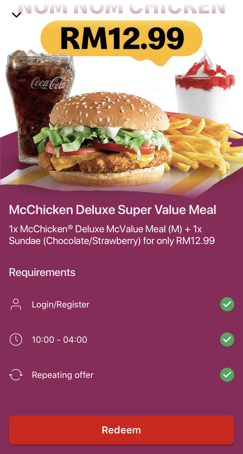 ▼ McChicken Deluxe Super Value Meal 只需RM12.99