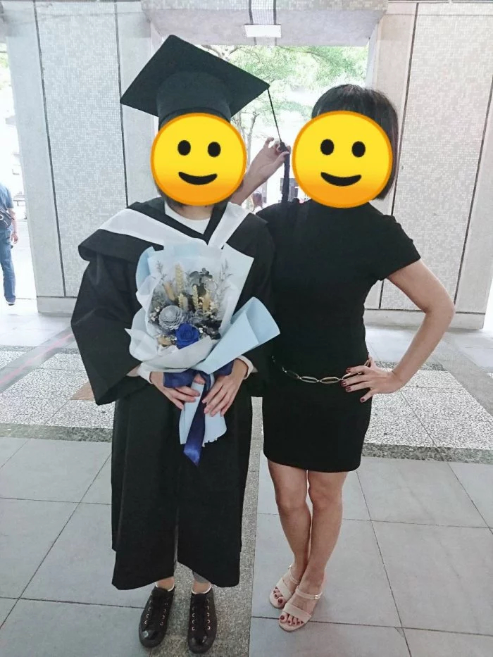 可惜来不及参加妳的毕业典礼,看着妳手上的花束跟妳妈咪合照就值得了。