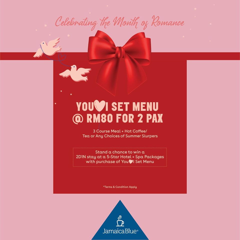促销活动:Jamaica Blue 推出 You & I 情人节 2份套餐只需RM80(原价RM120)