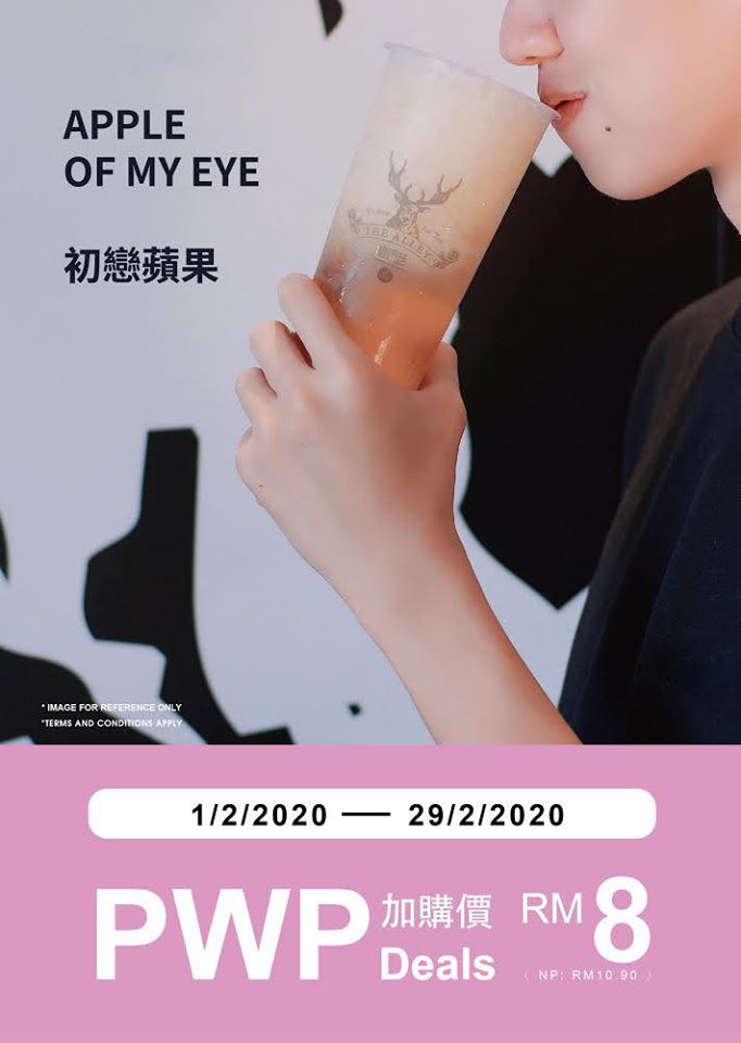促销活动:购买任何一杯饮料,可缴付RM8加购一杯「初恋苹果」饮料