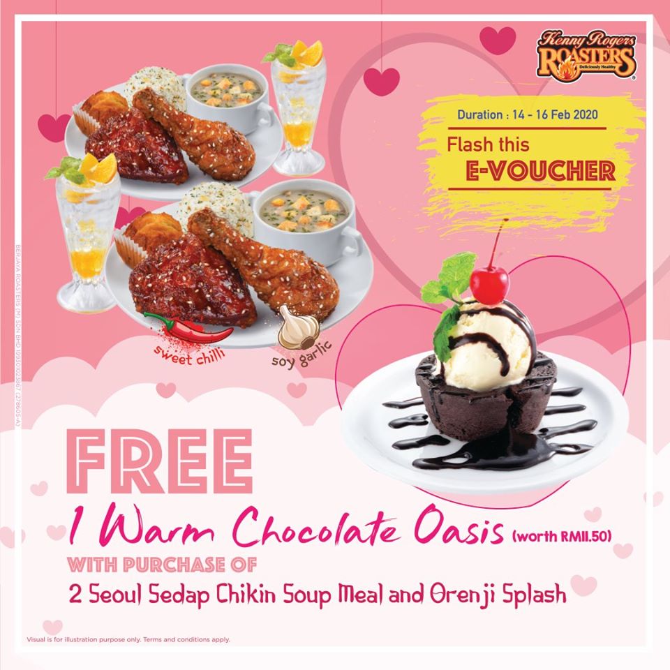 - 购买指定 2份餐点:Seoul Sedap Chikin Soup Meals 和 Orenji Splash 就可免费获得一份Warm Chocolate Oasis(价值RM11.50)