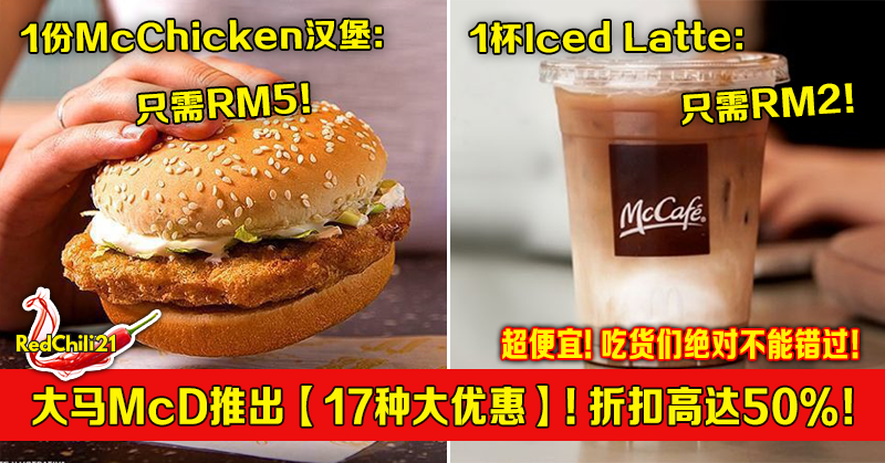 ④ 大马Mcd推出「17种大优惠」!折扣高达50%!