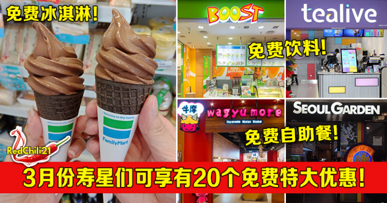欢迎3月份的到来!在这个月份,寿星们可享有20个生日超值特大优惠啦!甚至是免费的都有哦!