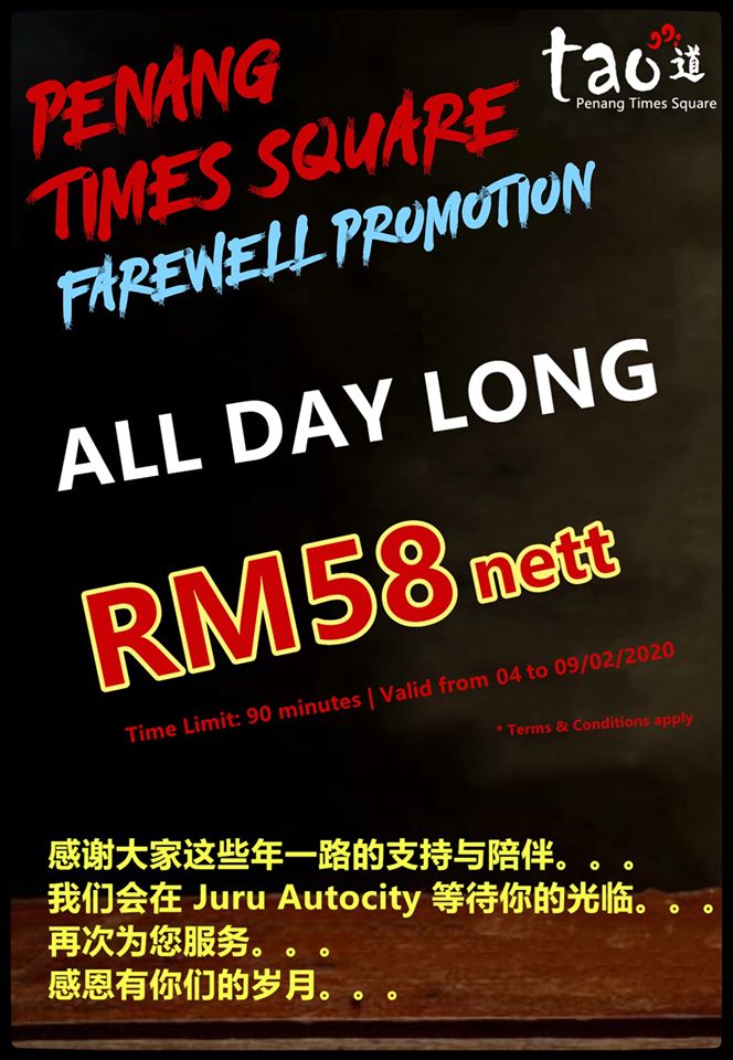 促销地点:只限槟城 TIMES SQUARE 的 Tao Authentic Asian Cuisine分行