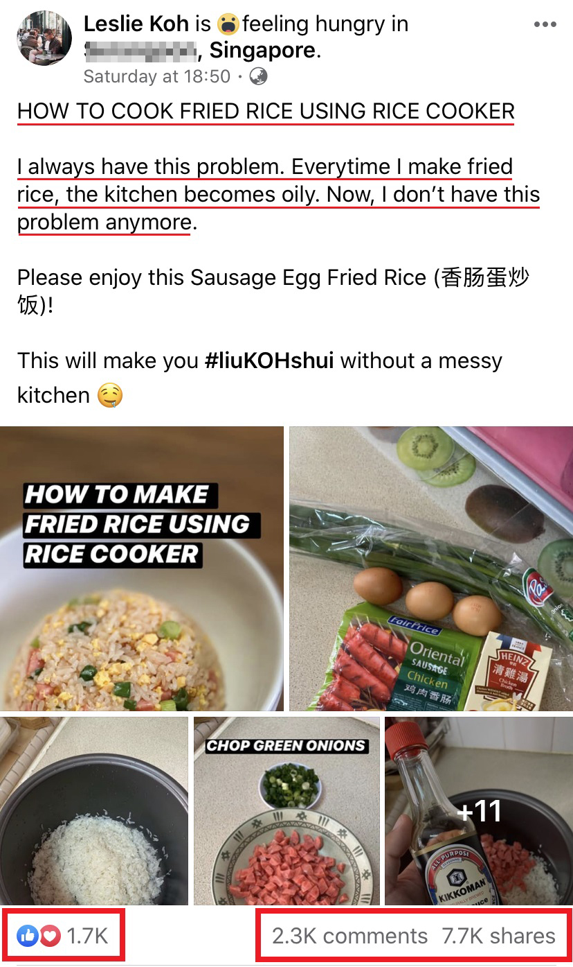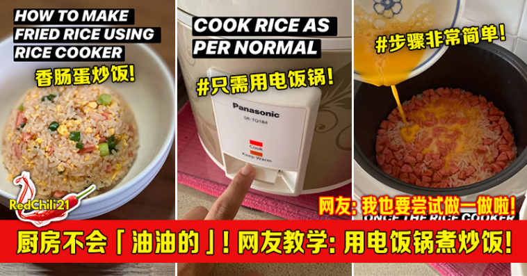 近日,一名新加坡网友 Leslie Koh 在面子书分享自己的食谱,用电饭锅做出美味的炒饭,不用再怕弄脏厨房啦~
