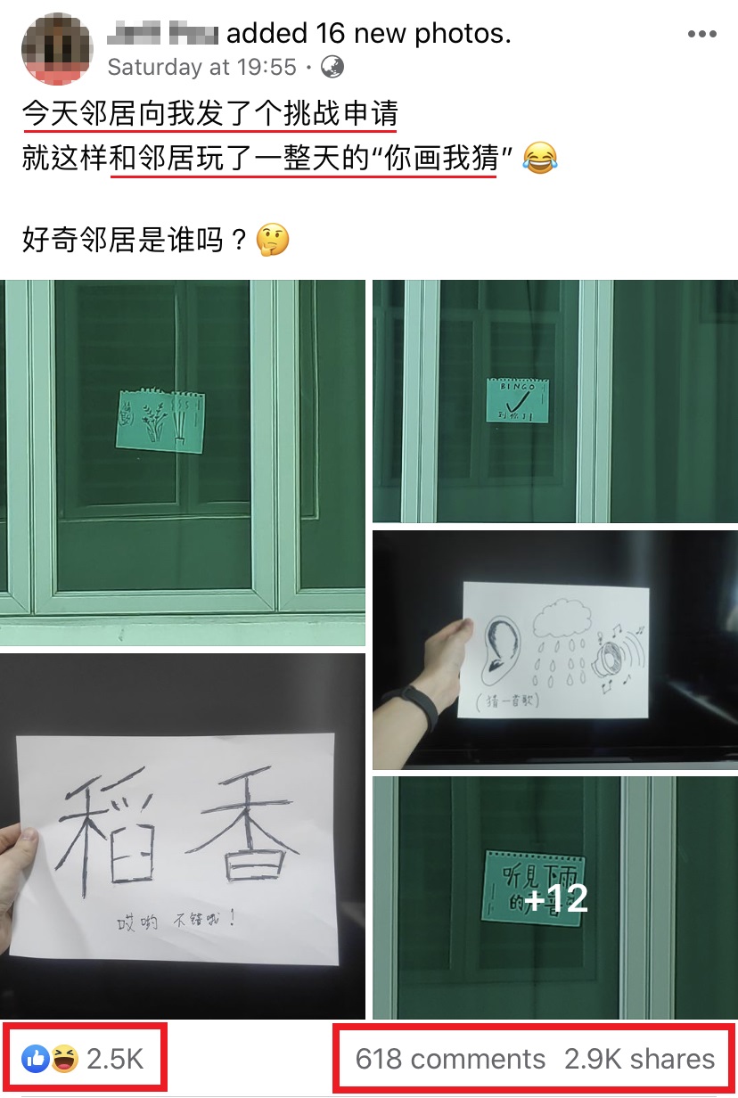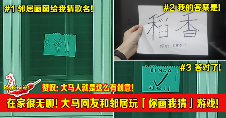 近日,一名大马网友发文分享一件有趣又好笑的事,由于每天待在家里实在太无聊,于是就想到了一个新玩法,和对面邻居玩「你画我猜」的游戏!