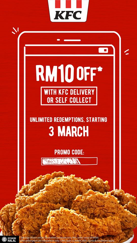 - 必须在KFC 官方网或 App下单(只限Self Collect 及 Delivery)【点击这里】