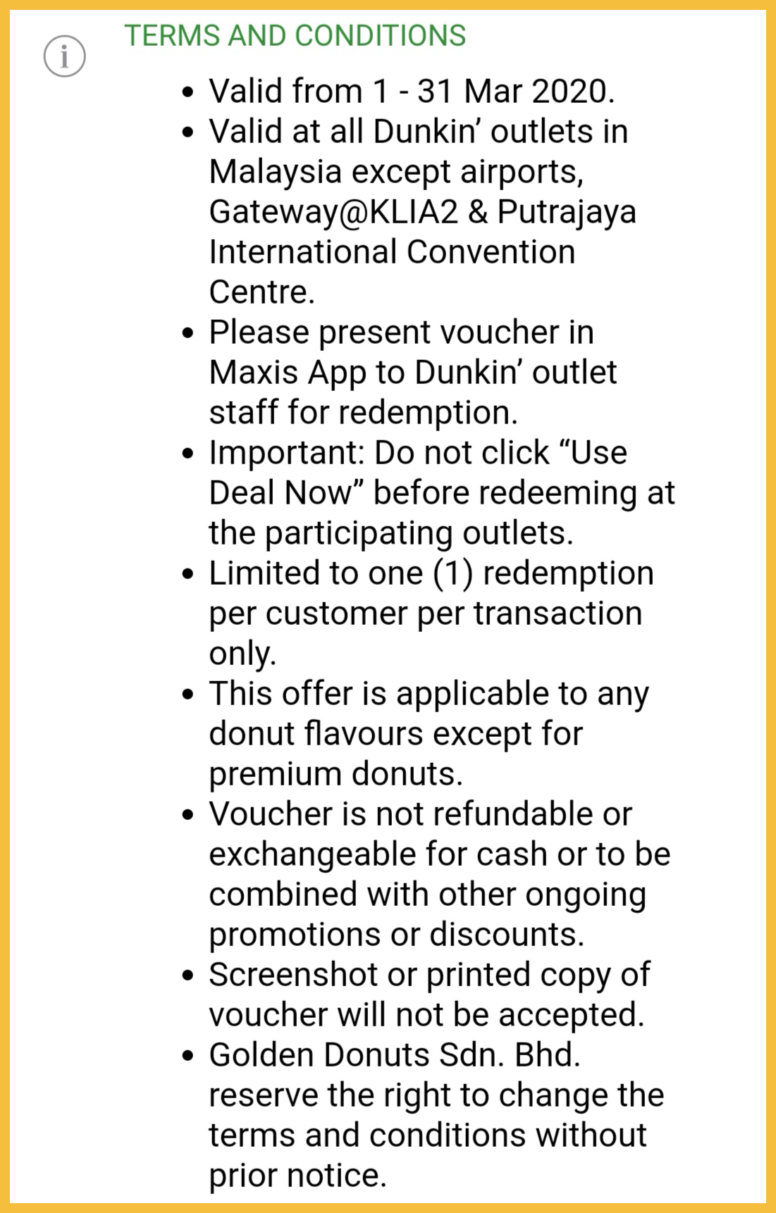 促销地点:大马 Dunkin’ 分行(除了机场分行,Gateway@KLIA2 及 Putrajay International Convention Centre)