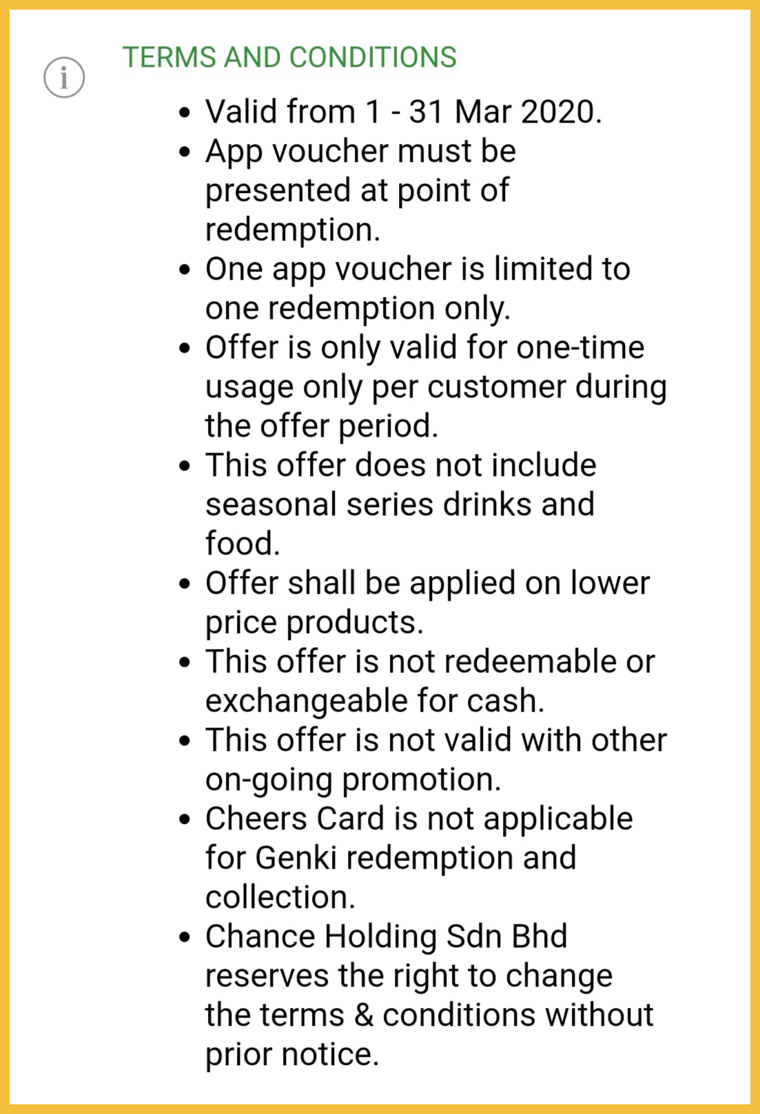 - 必须展示该优惠券给柜台人员
