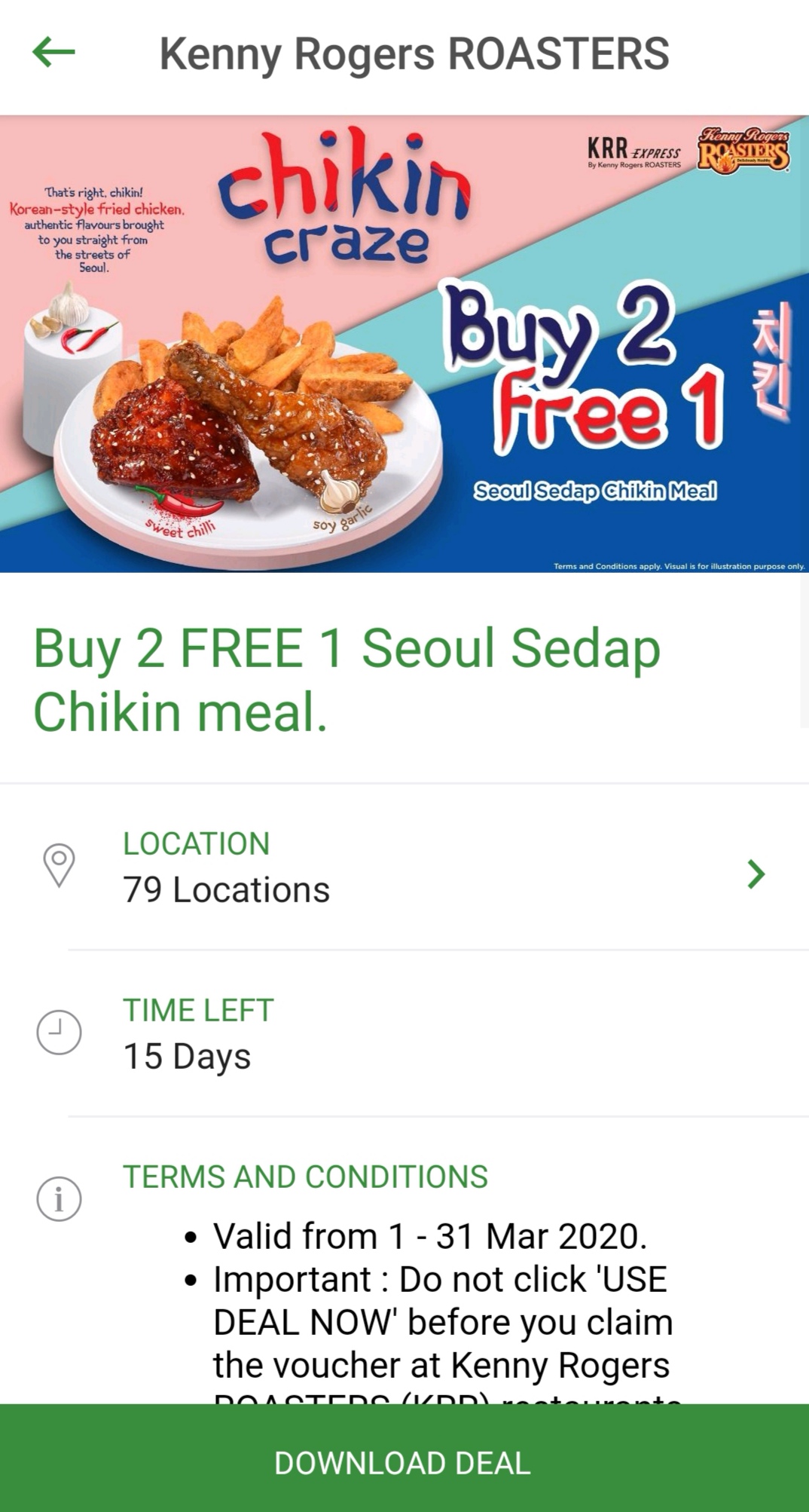 促销活动:Kenny Rogers ROASTERS —— 买二送一 Seoul Sedap Chikin 套餐