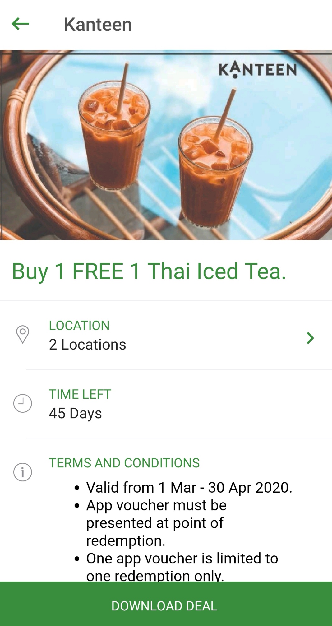 促销活动:Kanteen —— 泰式奶茶买一送一