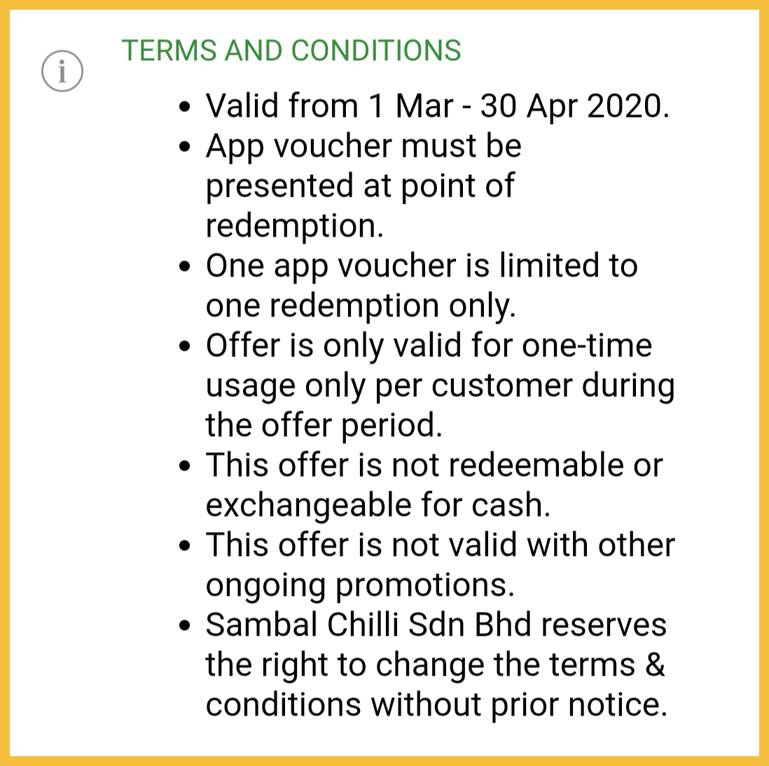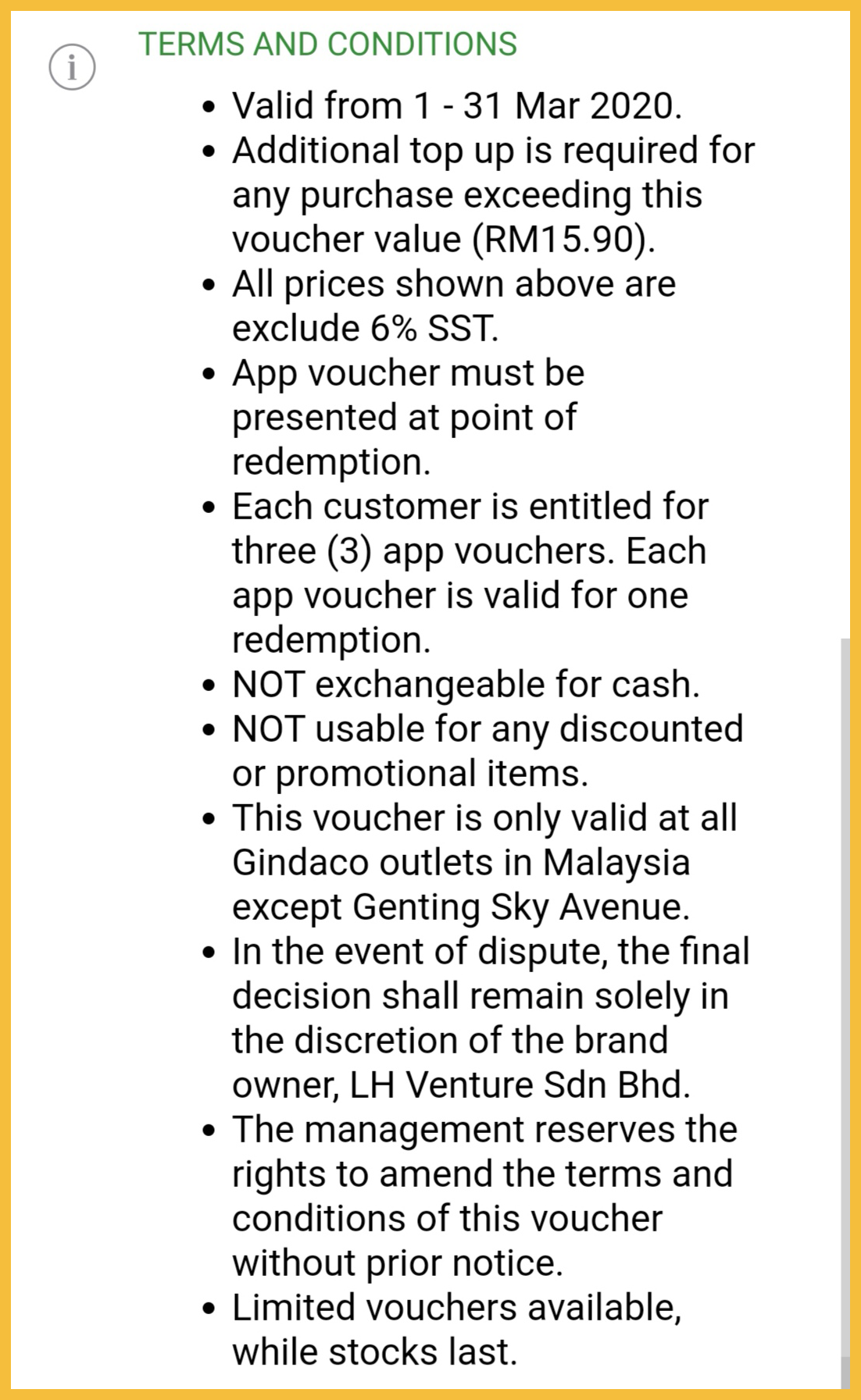 促销日期:即日起至 31 Mar 2020 (除了星期日和公共假期)