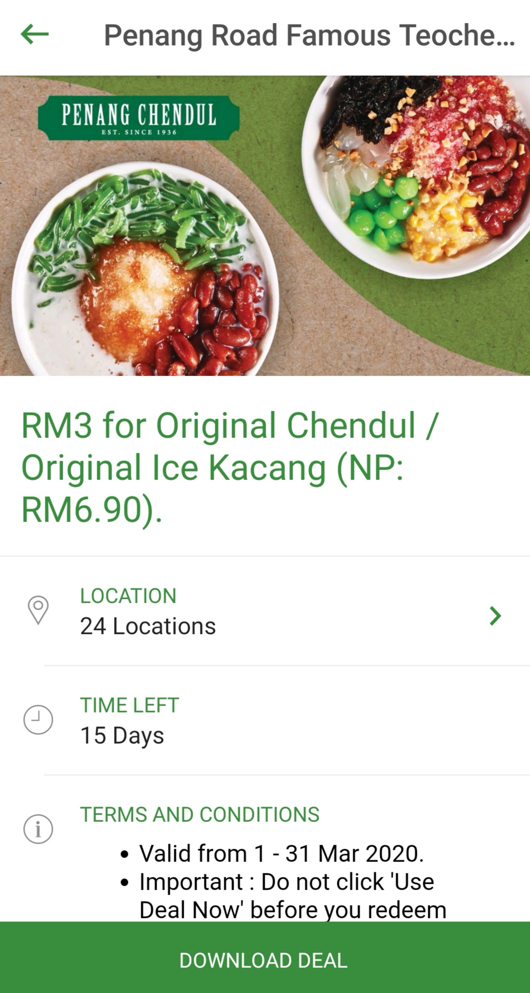 促销活动:Penang Road Famous Teochew —— Original Chendul / Original Ice Kacang 只需RM3
