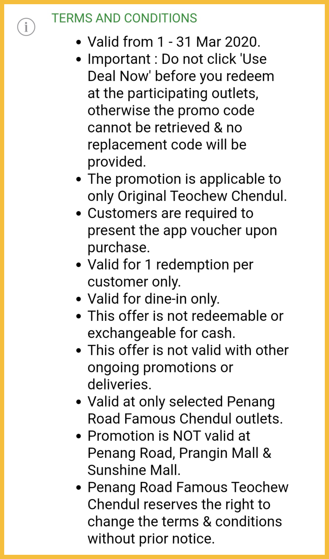 促销地点:只限槟城的 Penang Road Famous Teochew 分行(除了Penang Road,Prangin Mall 及 Sunshine Mall)