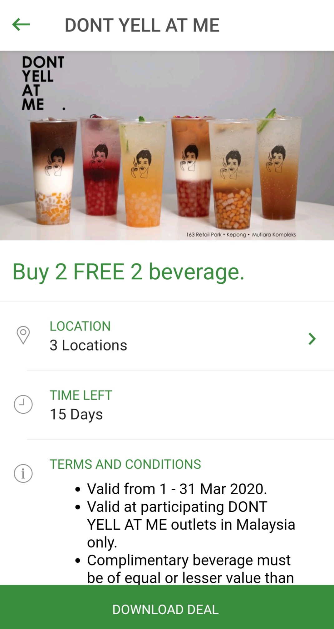 促销活动:DONT YELL AT ME —— 饮料买一送一