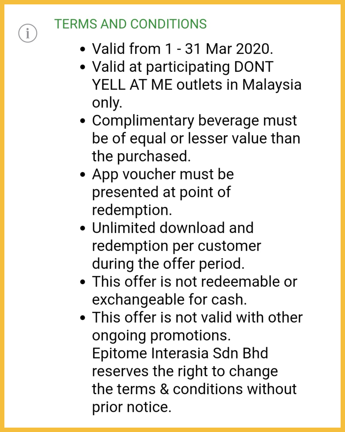 促销地点:大马 DONT YELL AT ME 分行