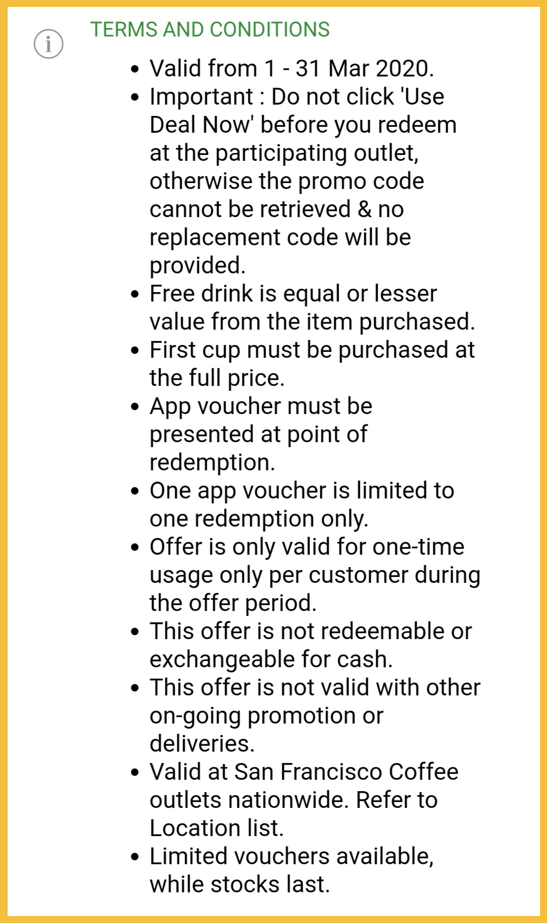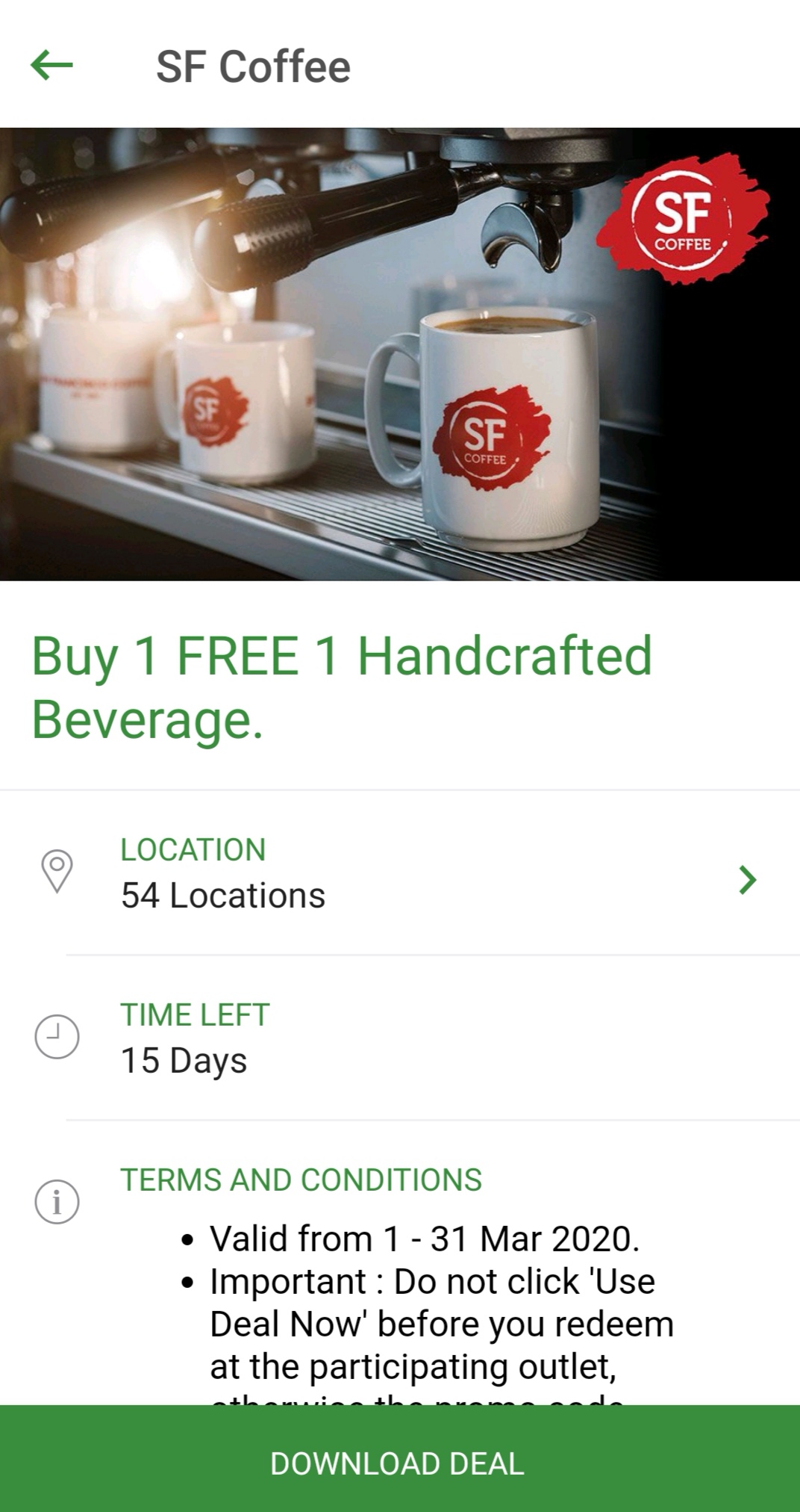 1. San Francisco Coffee —— 饮料买一送一