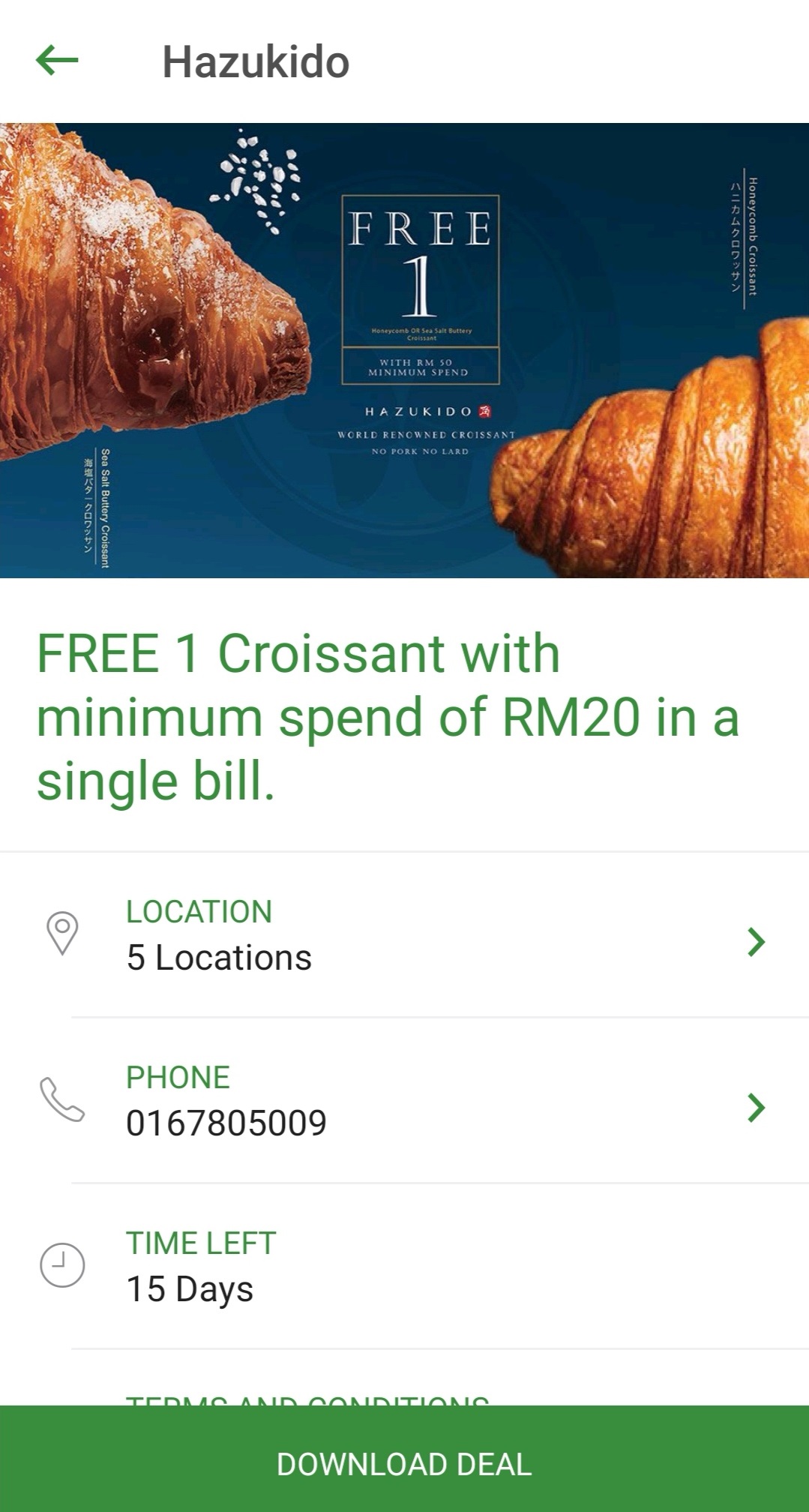 促销活动:Hazukido —— 消费RM20或以上可获得一份Croissant
