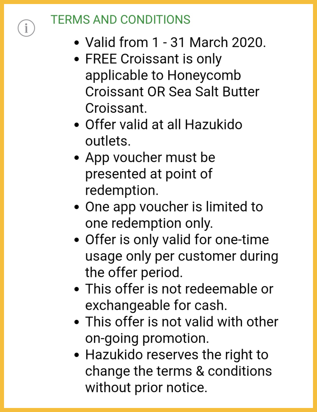19. Hazukido —— 消费RM20或以上可获得一份Croissant