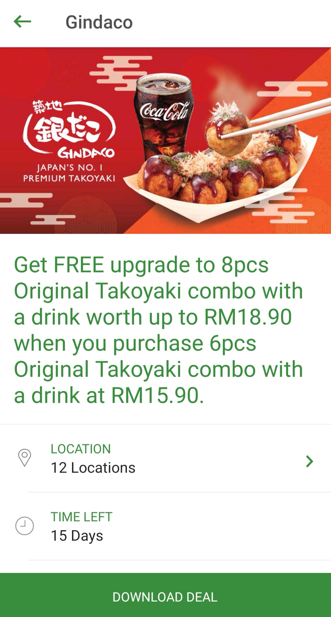 促销活动:Gindaco —— 购买6粒原味章鱼烧套餐,可免费升级(Upgrade)成8粒章鱼烧只需RM15.90