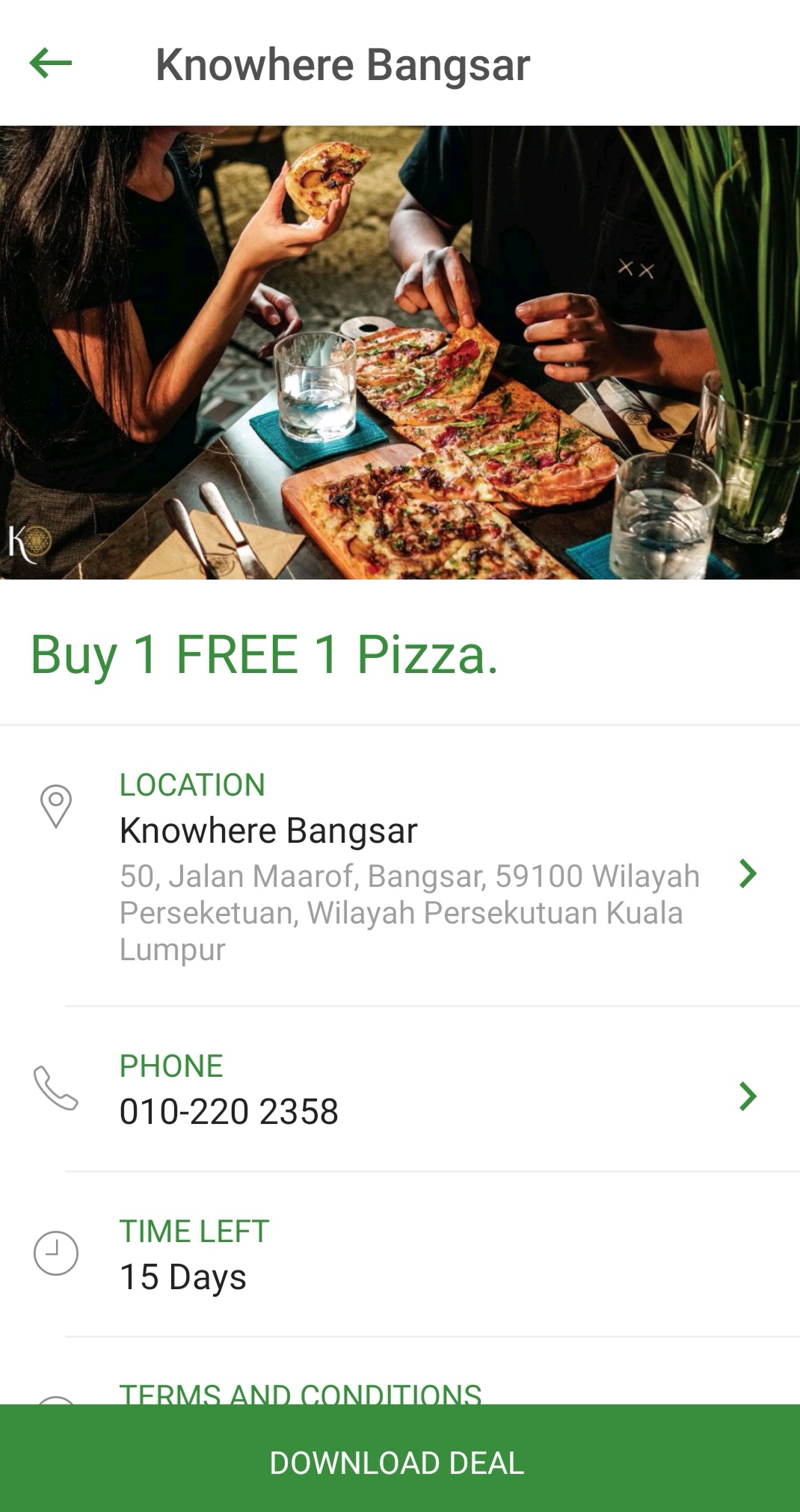 16. Knowhere Bangsar ——披萨买一送一只需RM36.80