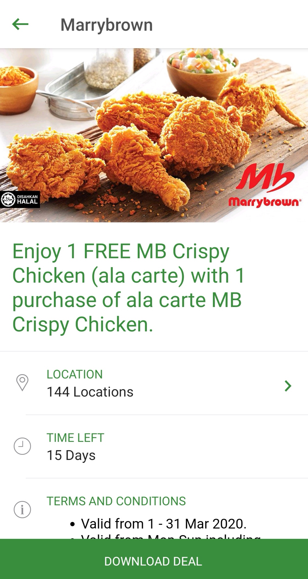 促销活动:Marrybrown —— 炸鸡买一送一