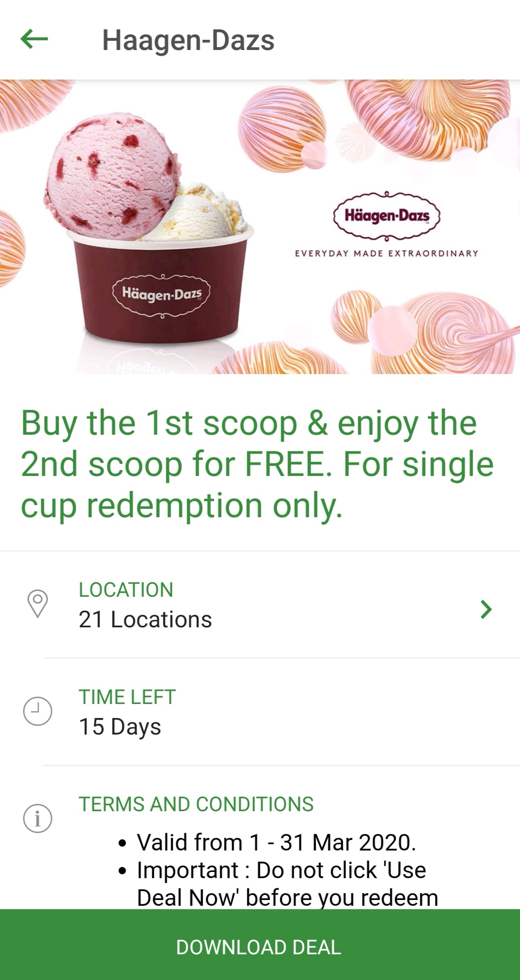 促销活动:Haagen-Dazs —— 购买1 Scoop冰淇淋,可额外免费多1 Scoop冰淇淋