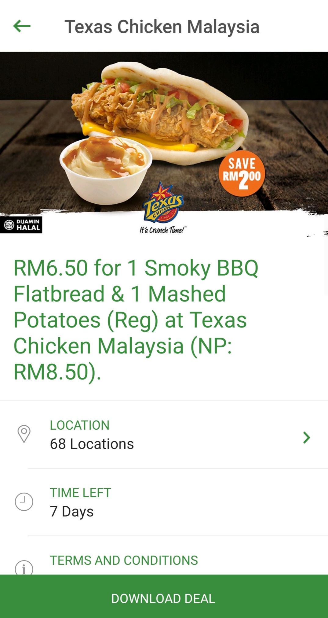 促销活动:Texas Chicken —— 1份 Smoky BBQ Flatbread 和一份马铃薯泥只需RM6.50