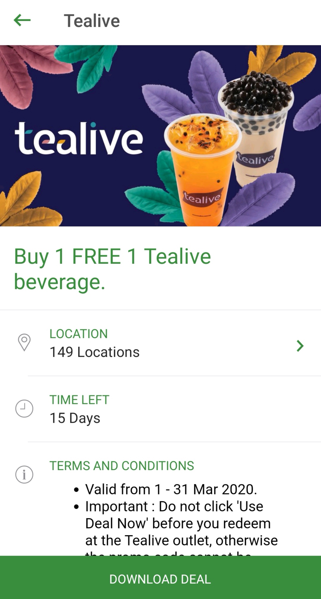 2. Tealive —— 饮料买一送一
