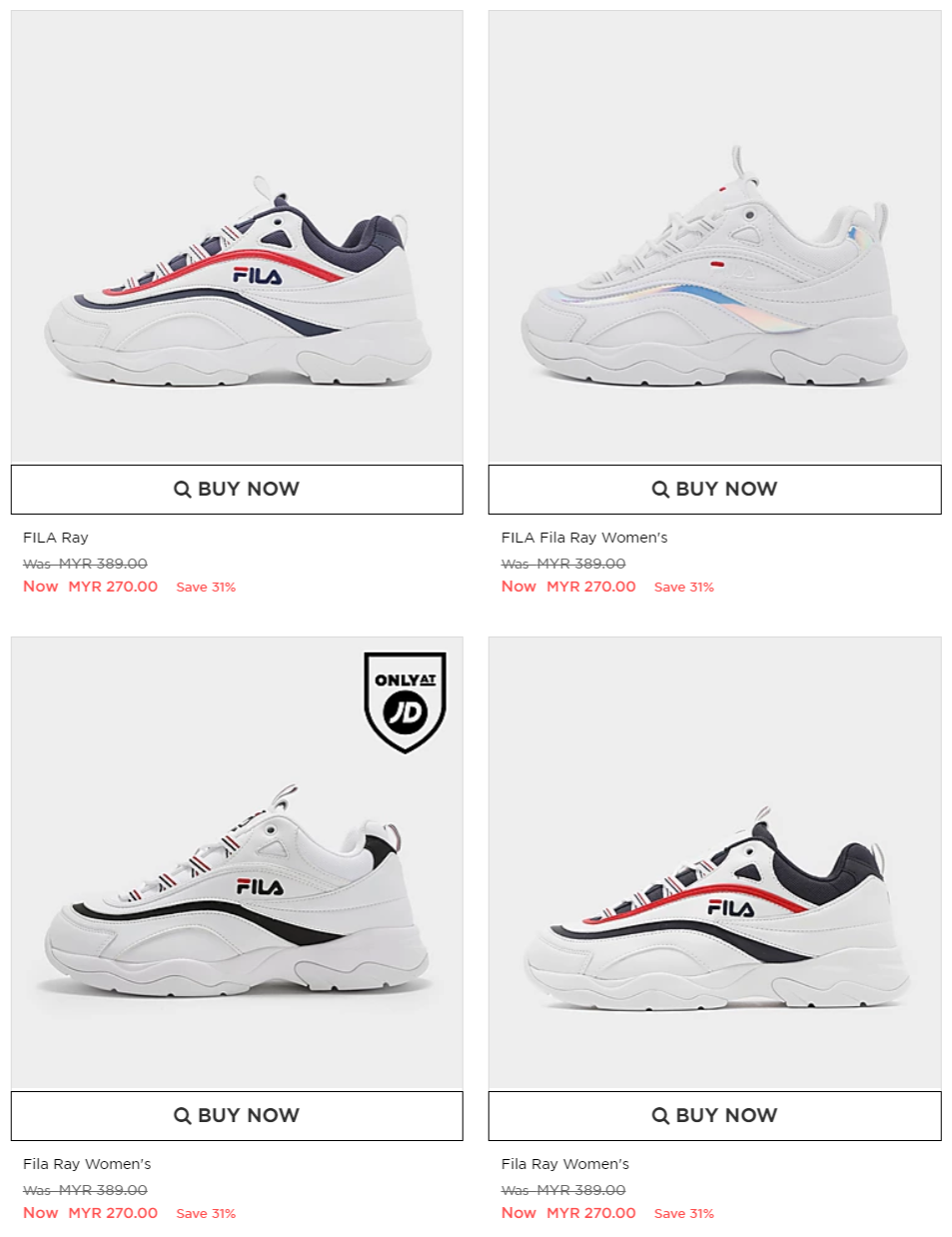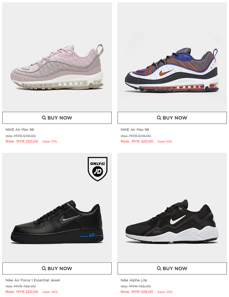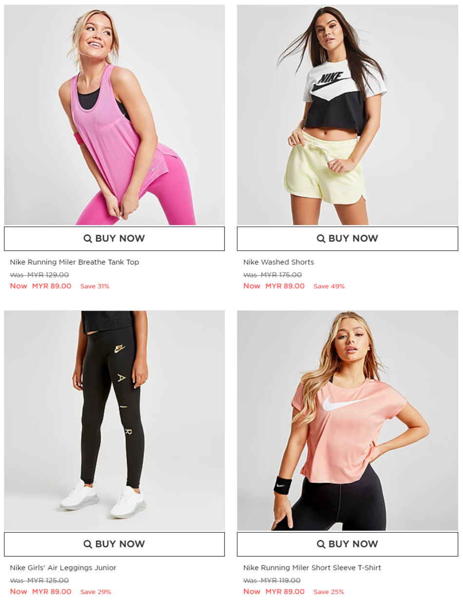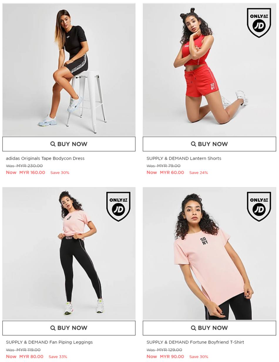 在这次优惠中,不管是男装或女装的鞋子及运动衣物统统都享有优惠!不过,只限 JD Sport 的官方网才享有此促销啦!