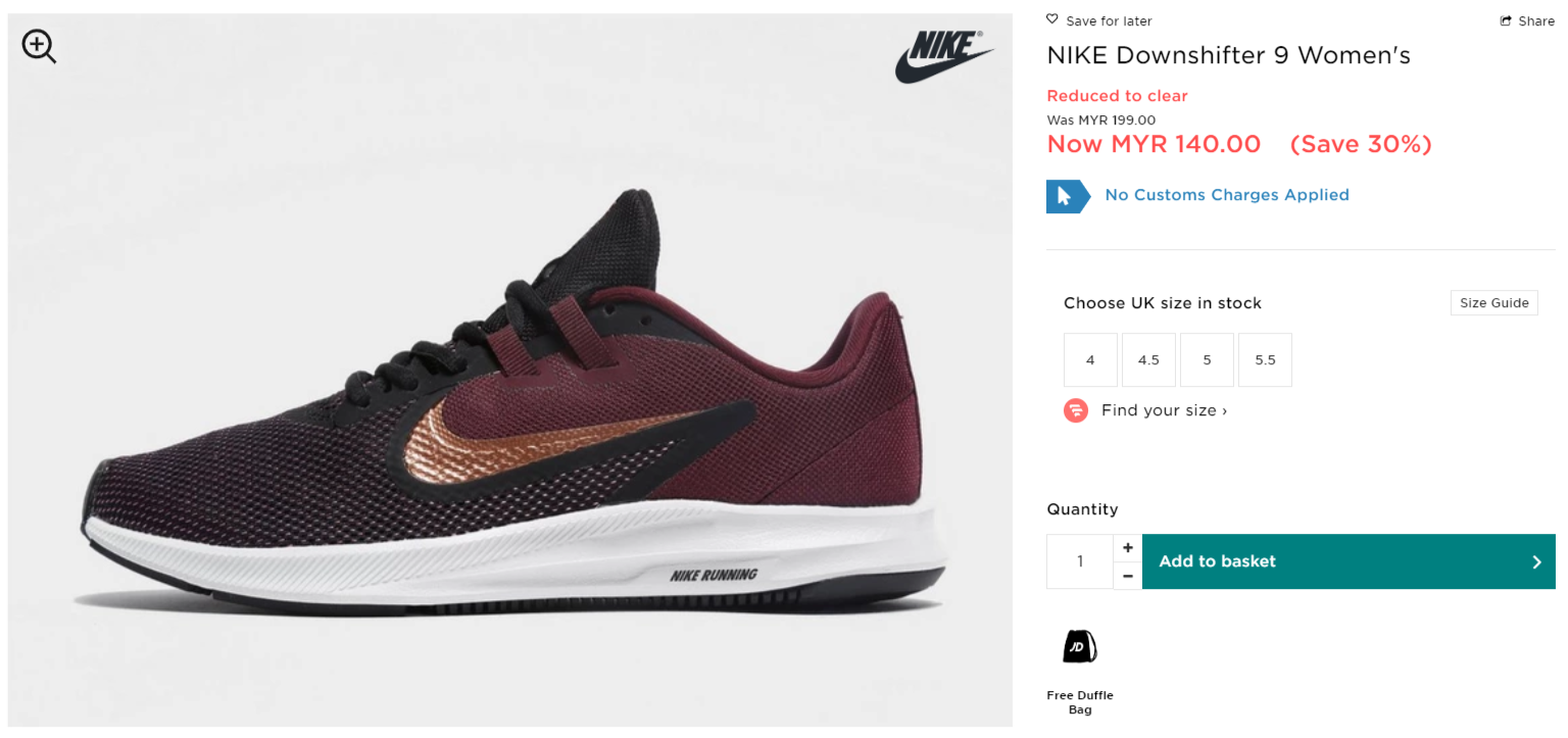 ▼ NIKE Downshifter 9 Women’s – 只需RM140(原价 RM199)!