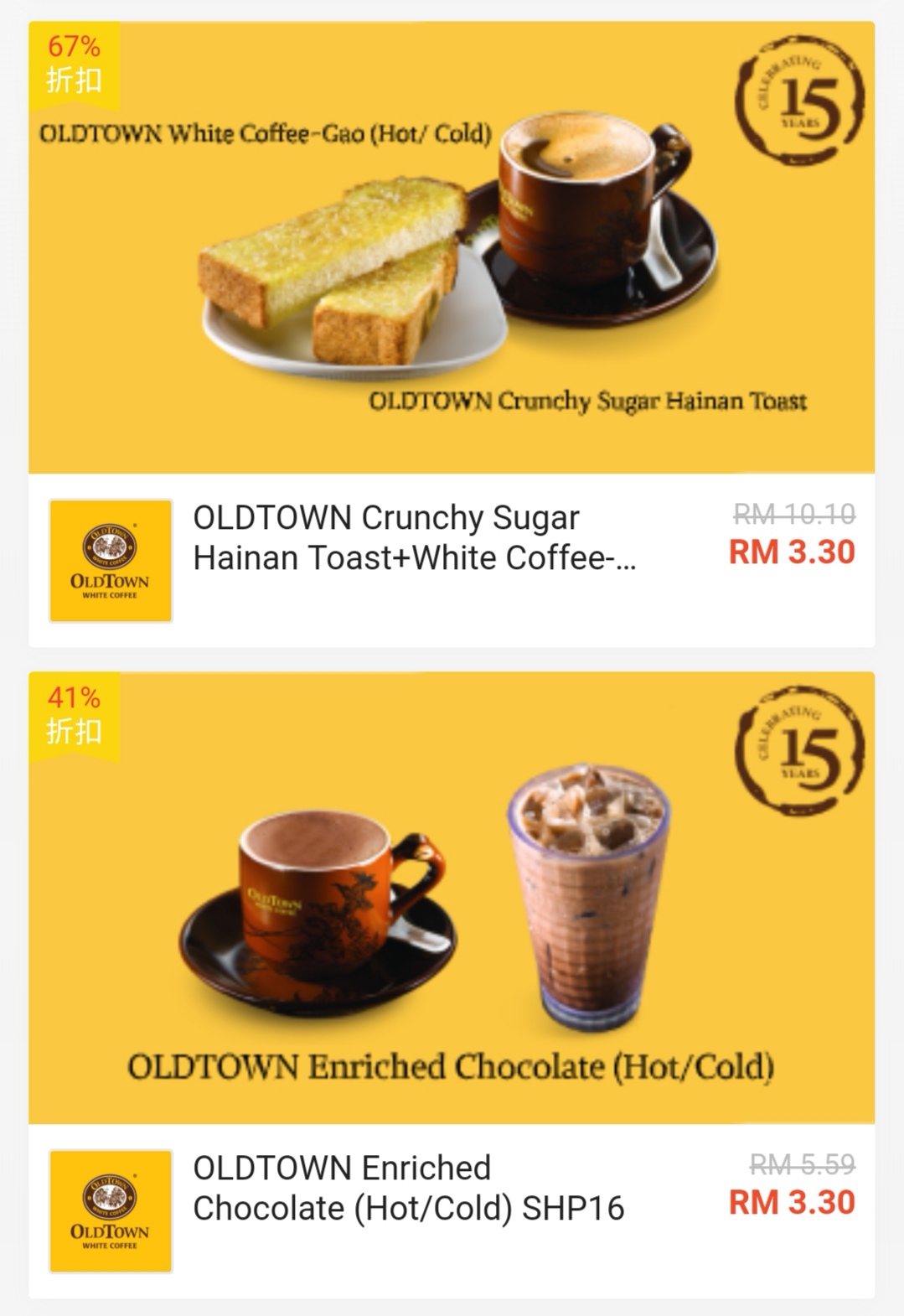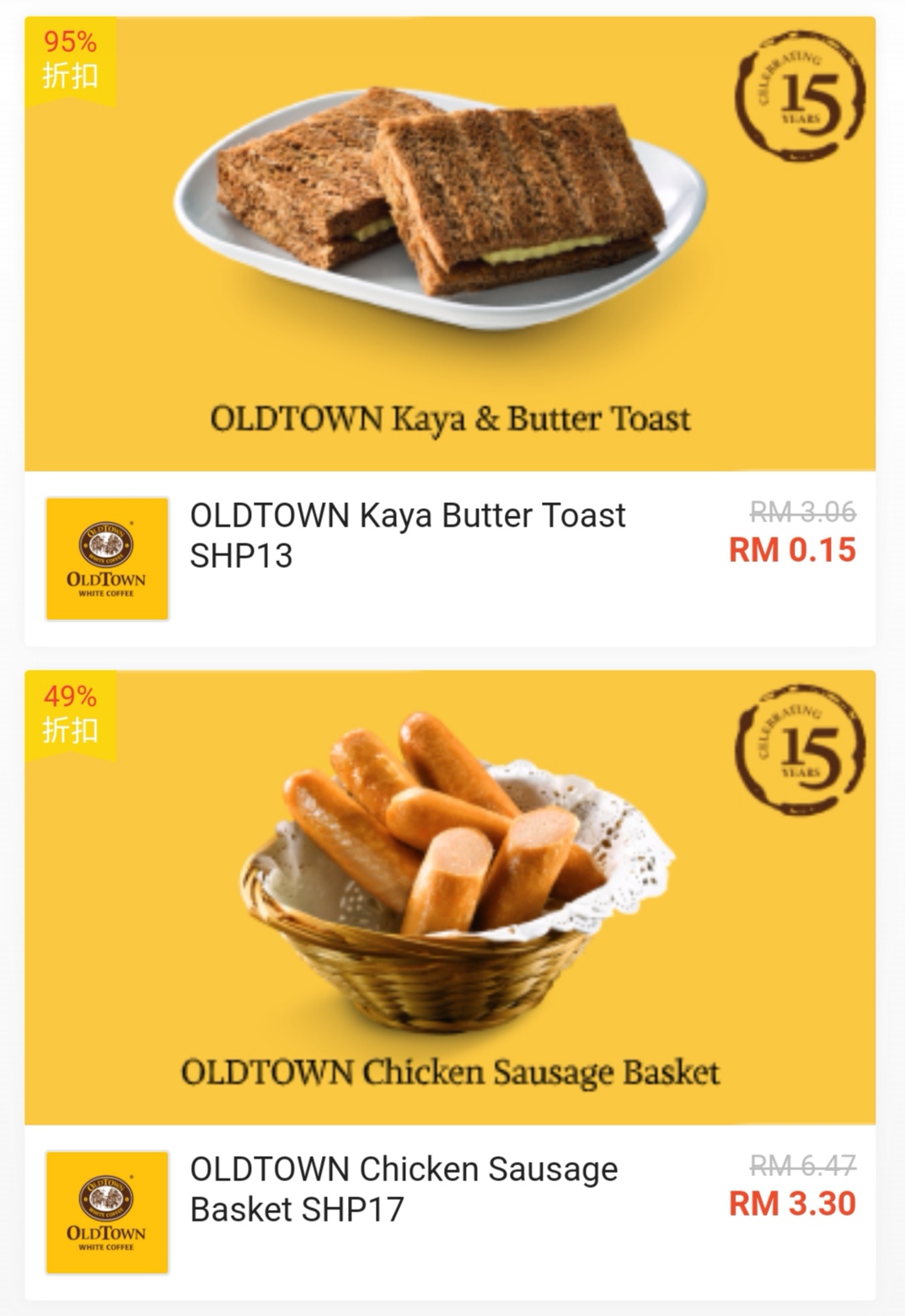 促销活动:Oldtown与Shopee —— 超值美食优惠券!最低只需RM0.15!