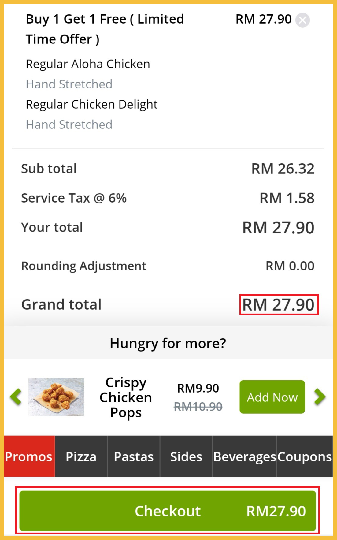 ※ 2份 Pizza 只需RM27.90!相等于一份 Pizza 只需RM13.95!是不是很值得呢?!