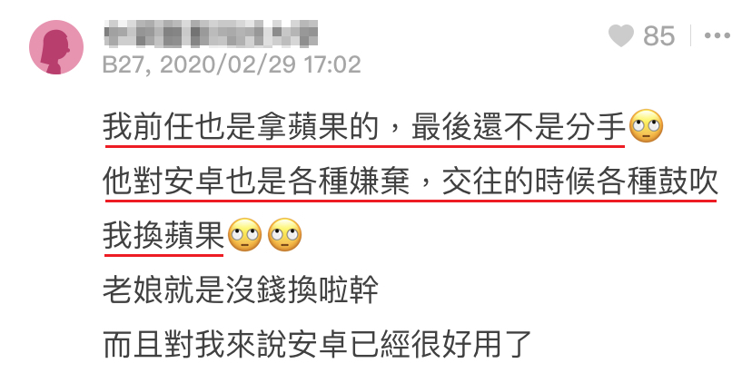我刚开始以为她在开玩笑,后来认真问她:「妳真的觉得一定要用iPhone吗?」