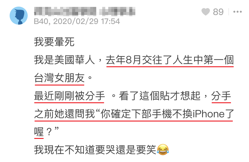 后来我问:「可是你前男友丑渣拿iPhone,还不是一样劈腿……」