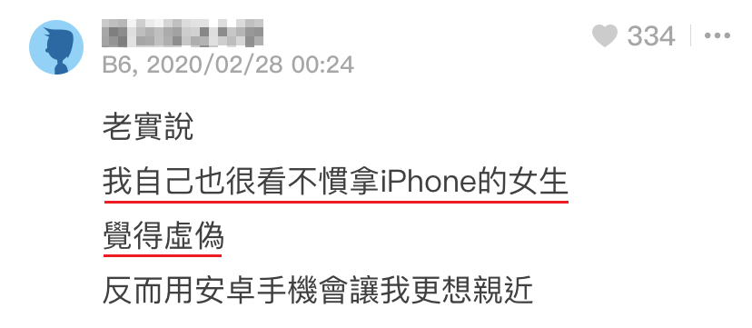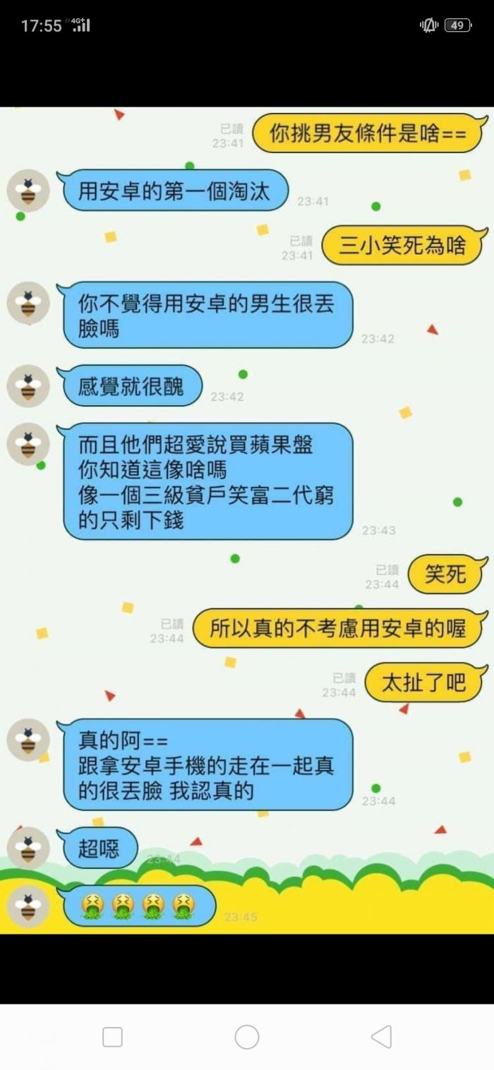 「你不觉得用安卓的男生很丢脸吗?感觉很丑。」
