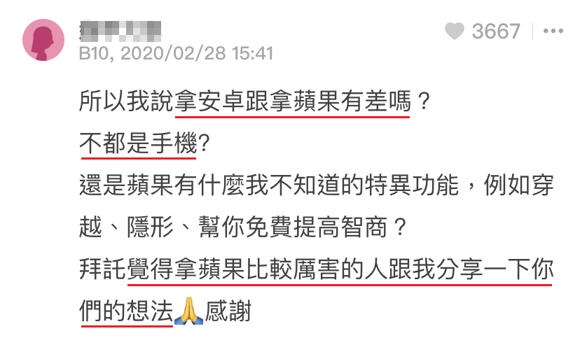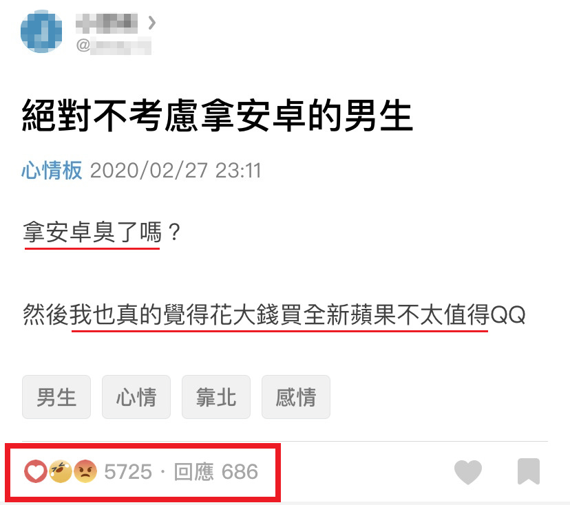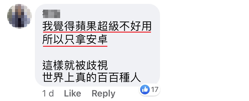 该帖文被疯传后,引起网友们的热烈争议!尤其是使用 Android 的朋友们,看了以后立刻被激怒!