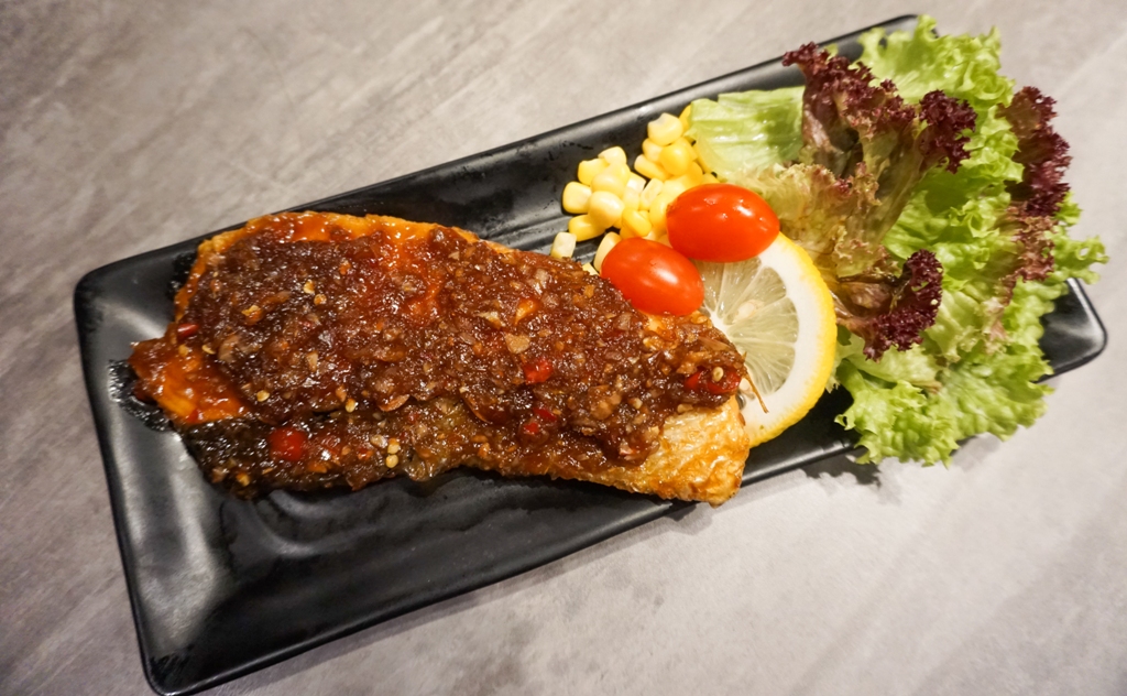 ▼Kuro Ama Salmon- 水蜜桃特别酱料三文鱼吃起来好鲜甜!