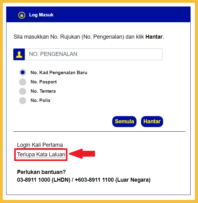 ※ 注意!如果你需要重设密码,请点击「Terlupa Kata Laluan」。