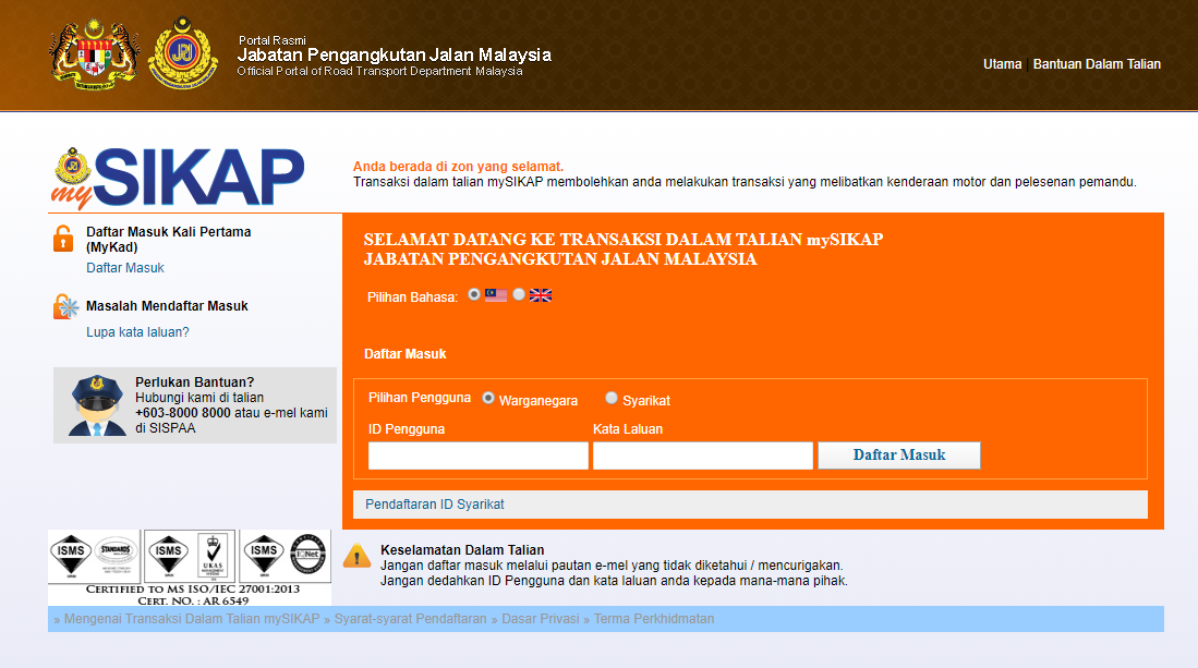 ① MySikap JPJ 官方网【点击这里】,注册或登记户口!