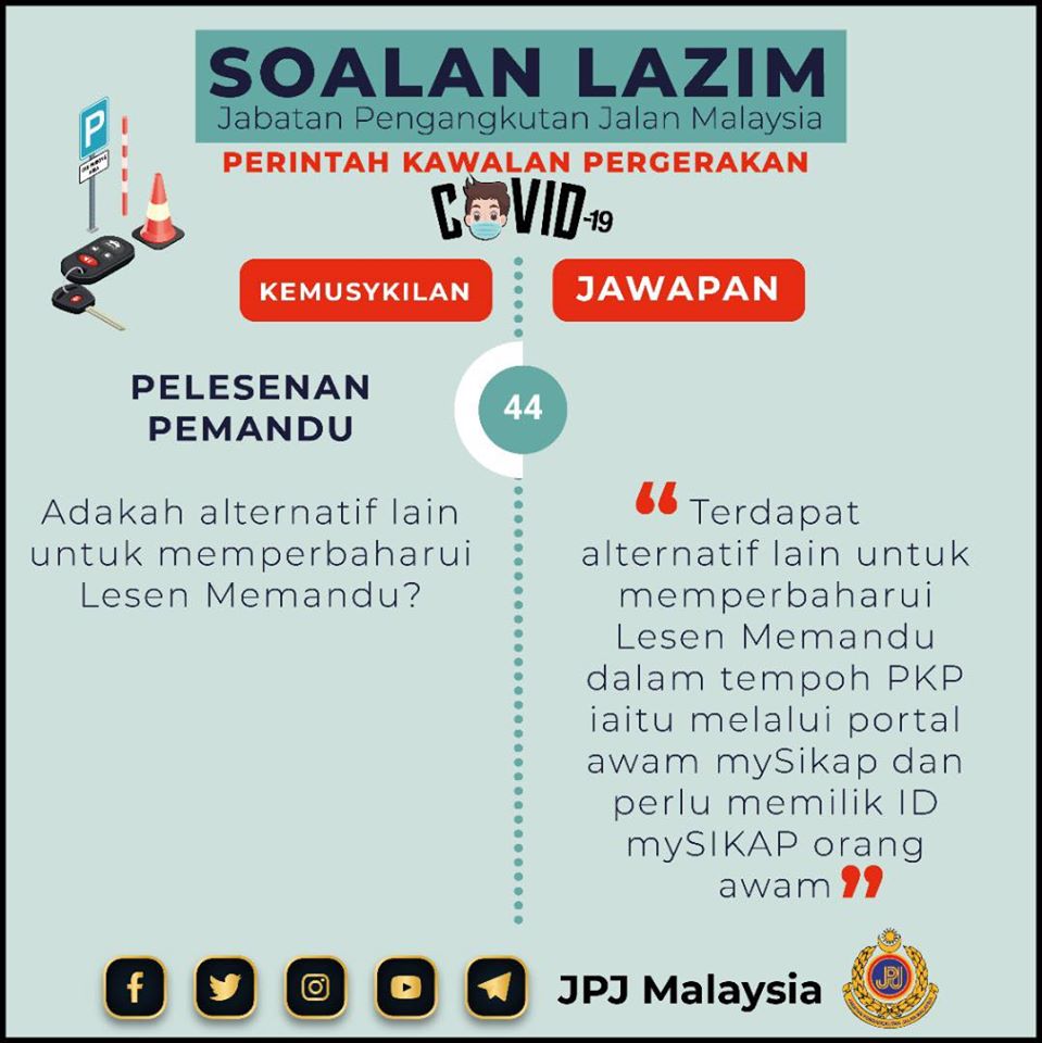 之前大马陆路交通局(JPJ)宣布:在行动管制令期间,民众可更新驾照或路税!你知道了吗?!
